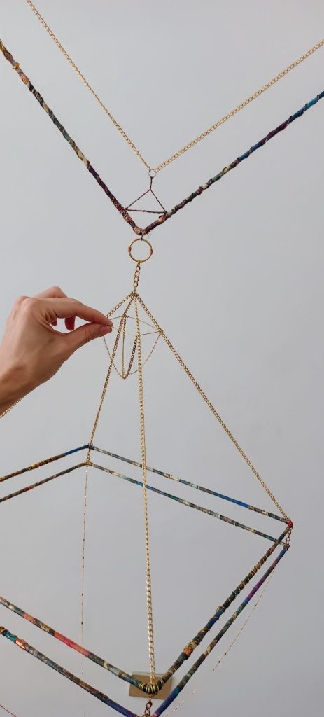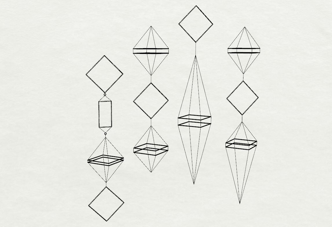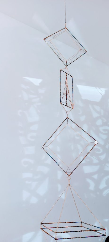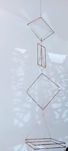 The EKRĪ are a family of suspended sculptural antennas constructed from a limited vocabulary of found metal components. They interact with invisible forces, most notably electromagnetic energy and wind or air currents. It is hypothesized that they also interact with other less well-documented energies.